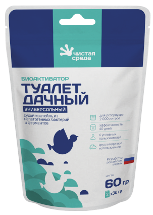 Устраняет неприятный запах, разлагает органику, фекалии, жиры, бумагу, крахмал, мочевину, белок. Создан российскими учеными на основе микроорганизмов постоянно присутствующих в почвах России. Содержит уникальную для российского рынка концентрацию (1Х10⁹ КОЕ) 4 видов спор аэро и анаэробных бактерий. Средство нетоксично для человека, животных, растений.